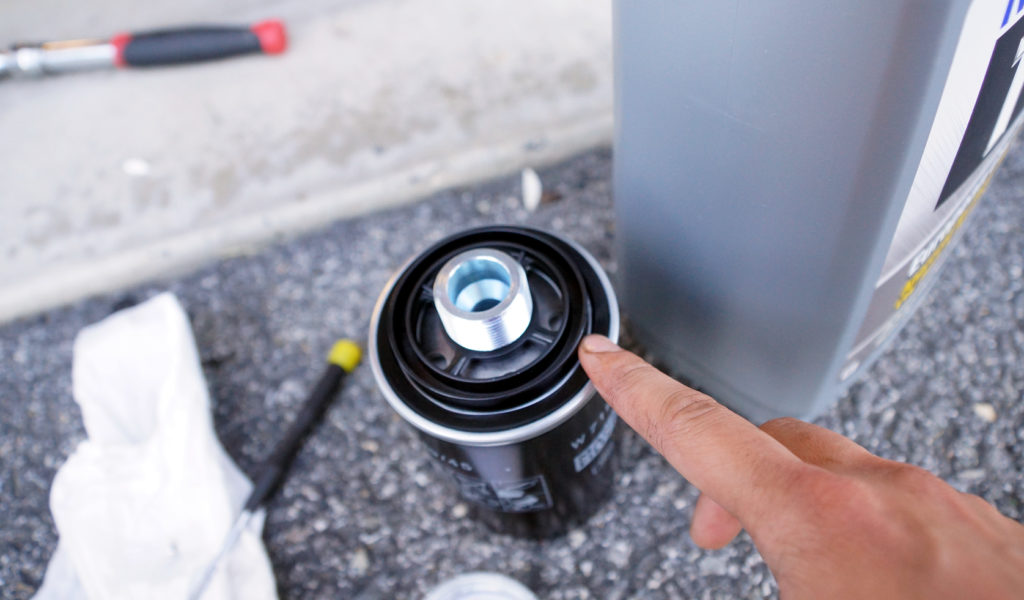 Apply a thin, consistent coat of oil around the brim of your new oil filter to make future removal of the oil filter easier, as well as improve the air-tight seal to prevent leakage.